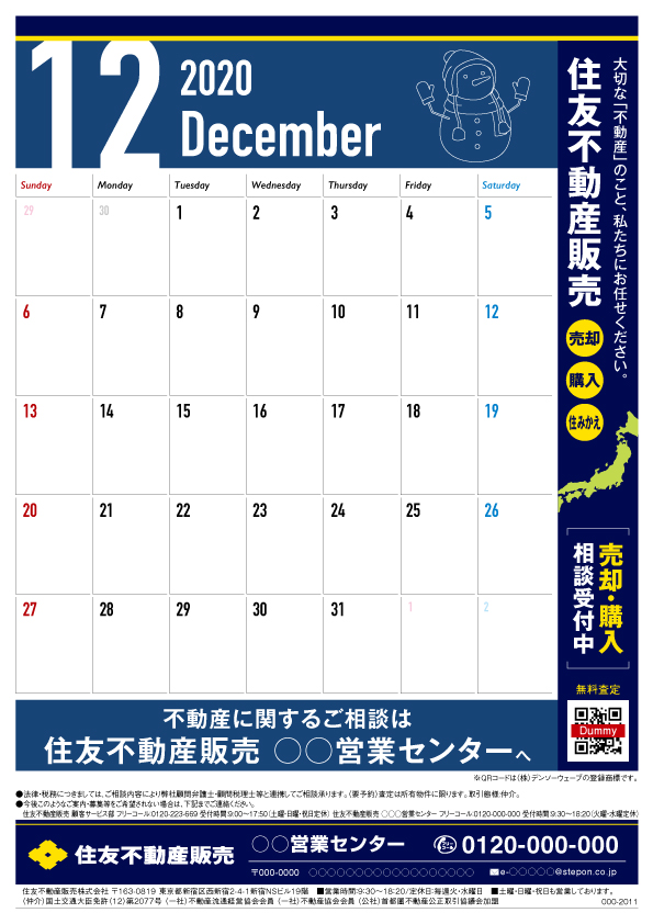 本部カレンダー20年12月