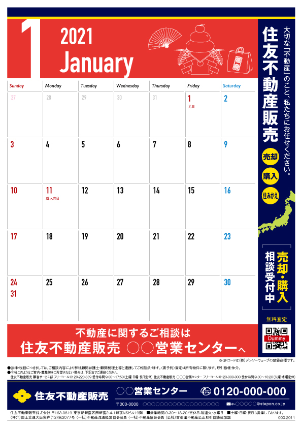 本部カレンダー21年01月