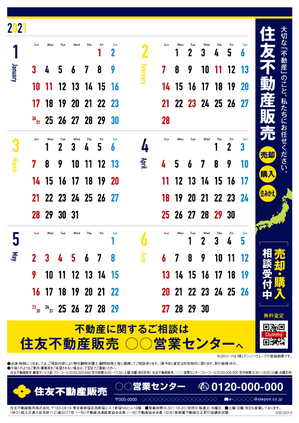 本部カレンダー21年01月〜06月